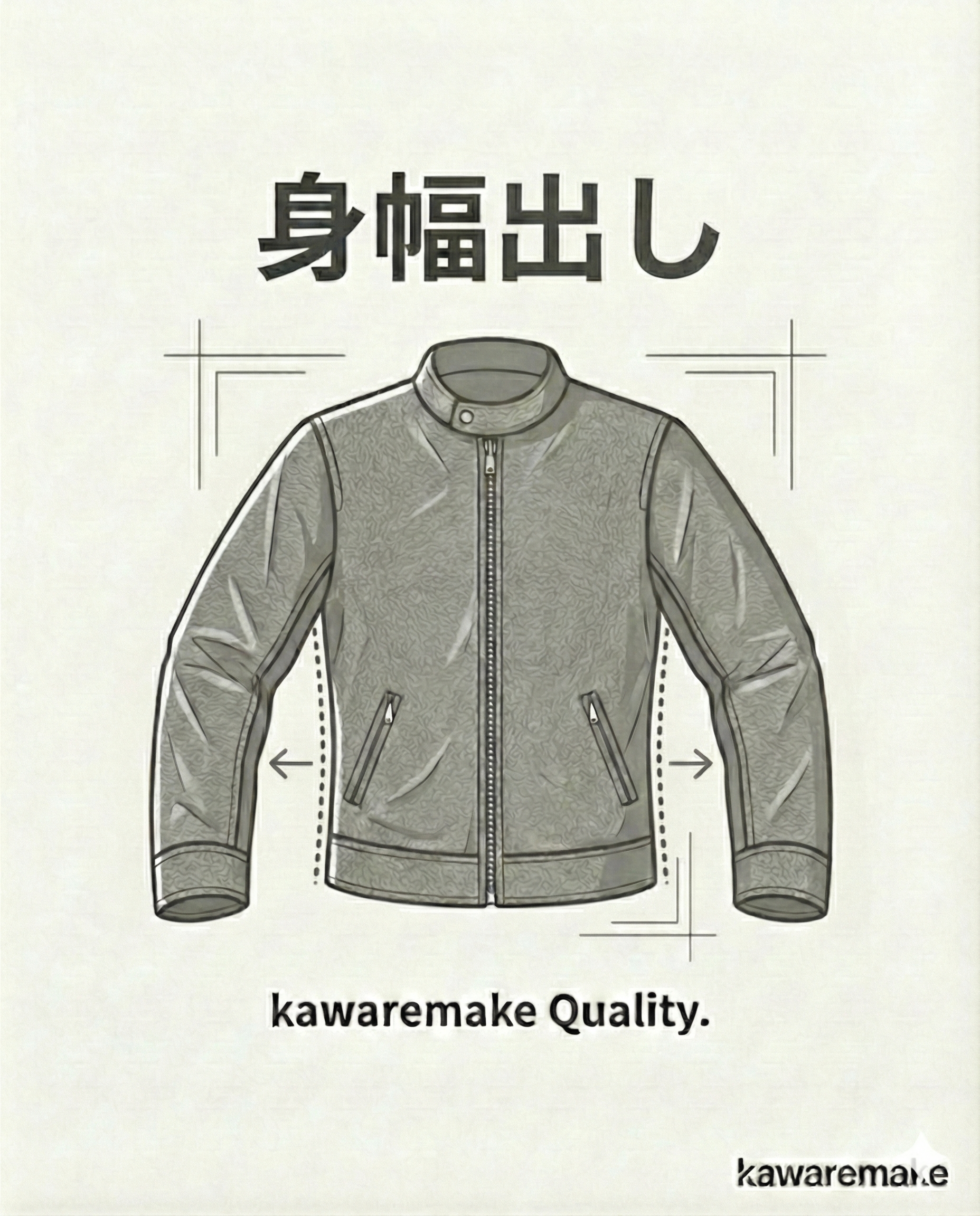 (左ファスナー→右ファスナーまでの直線距離、ボタンホール→ボタン中心までの直線距離など) - 使用するレザー及び裏地は、極力近いものをストックから選ばせていただきます。