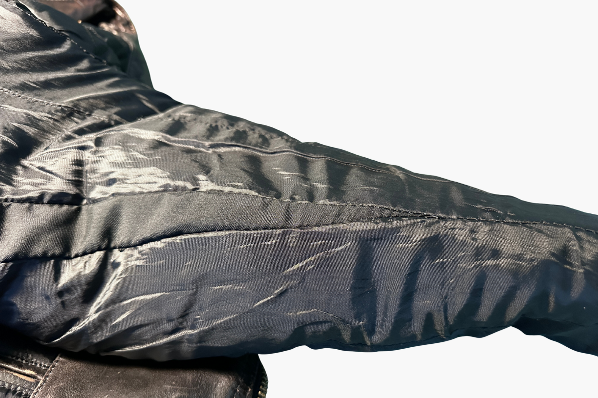 内側のキルティング裏地も、身頃・袖ともにサイズアップに合わせて展開。着心地を損なわないよう丁寧に縫製を行い、着用時のストレスを軽減しています。