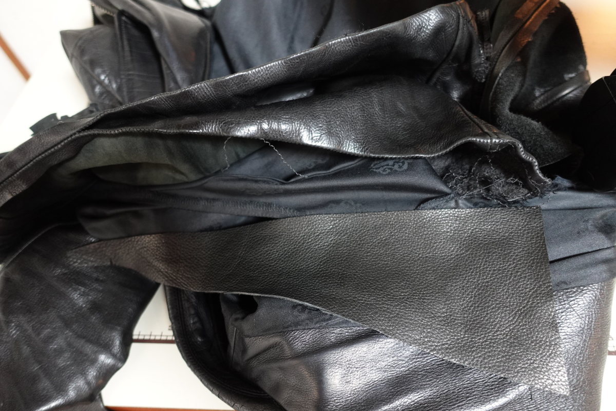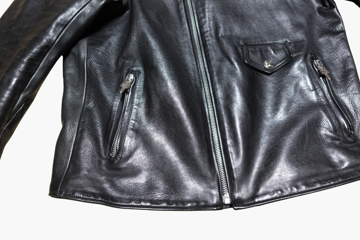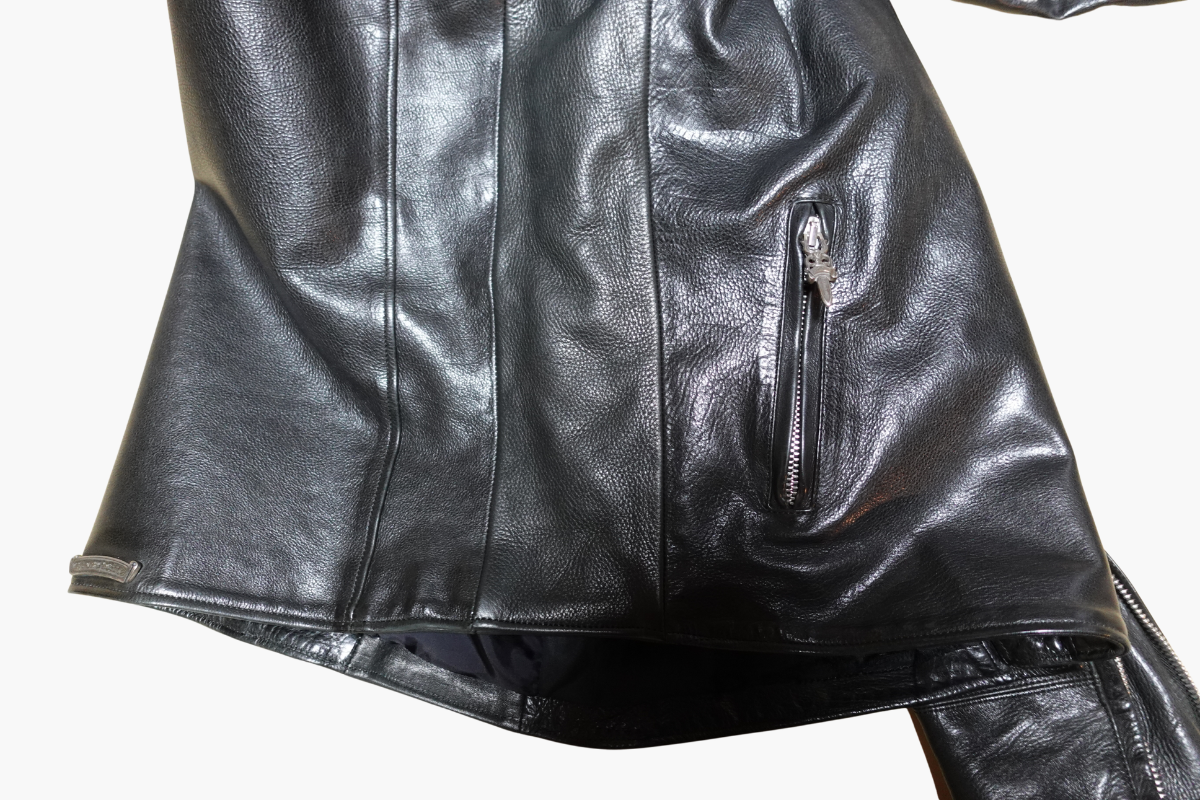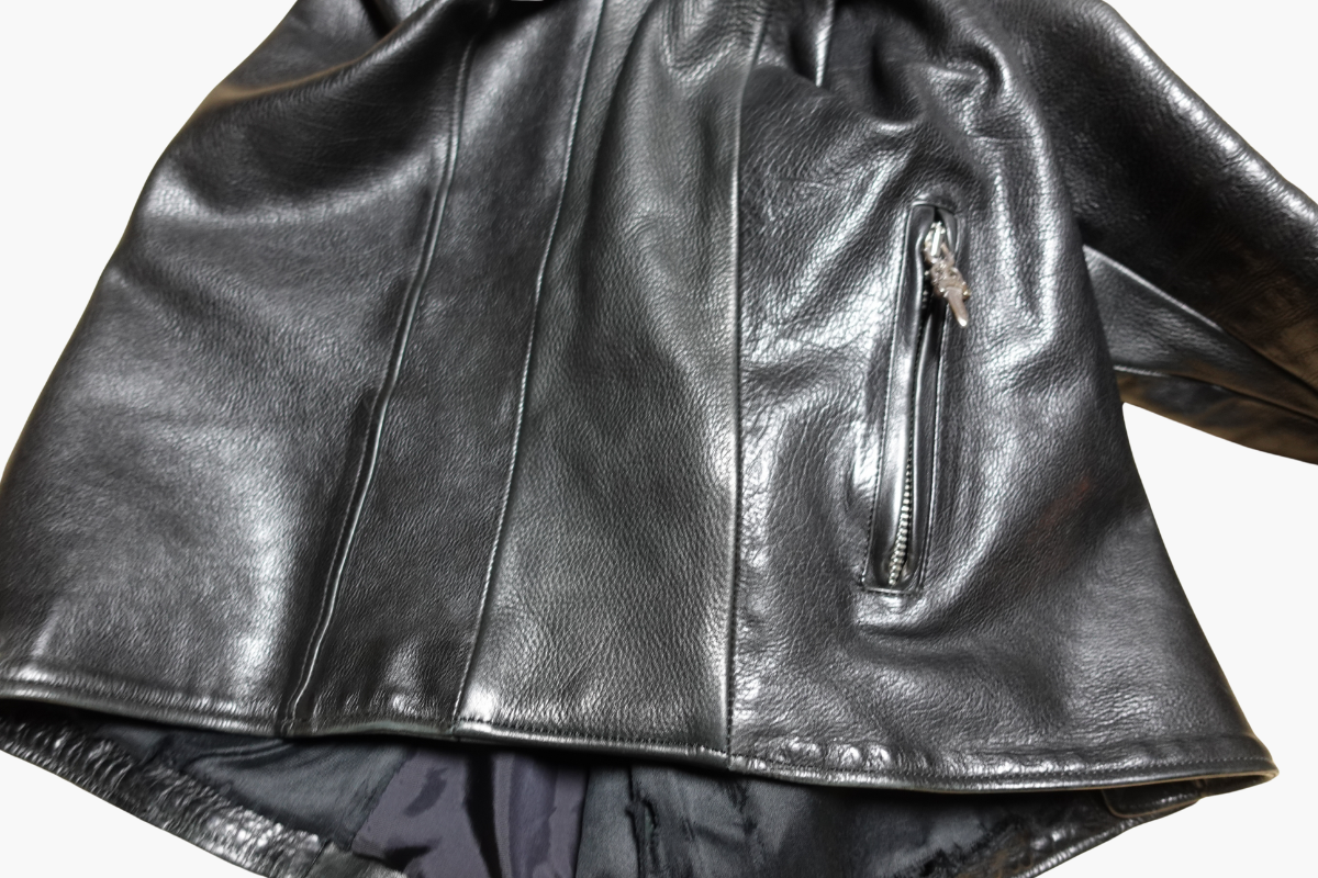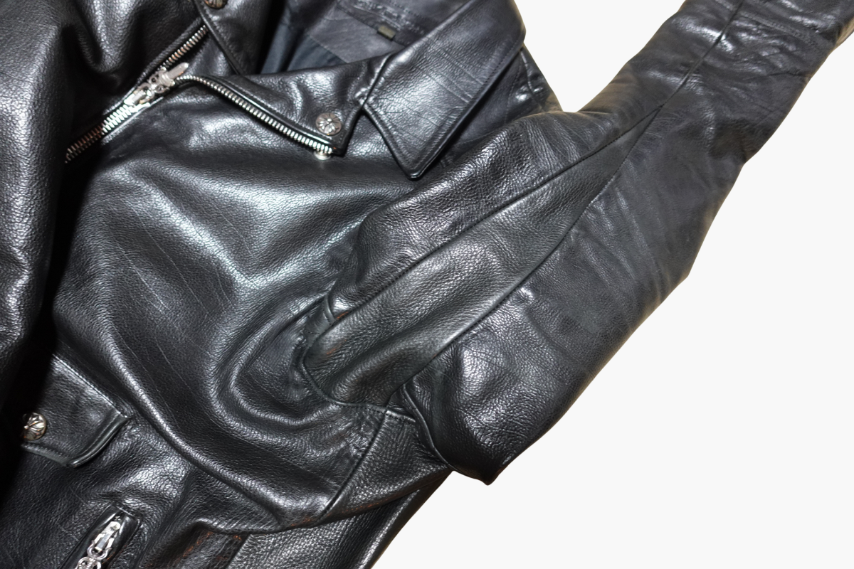 クロムハーツのライダースジャケットを、フルサイズアップコースにて左右の身幅をそれぞれ9cmずつ広げました。タイトすぎて着用が難しかった一着も、シルエットを損なわず自然なフィット感に。革の風合いを活かしつつ、しっかり着られるサイズへと調整しました。サイズ感でお悩みの方はぜひご相談ください。